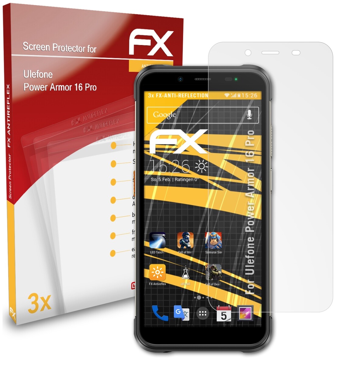 Anti-réfléchissant et absorbant les chocs: atFoliX 3 x FX-Antireflex Protecteur d'écran pour Ulefone Power Armor 16 Pro - Made in Germany! Expédié et vendu par @FoliX - Original et directement du fabricant! Accessoires de montage inclus: chiffon de nettoyage, outil d'application (racloir), Lien aux instructions de montage en plusieurs langues (incl. Vidéo Assemblée).