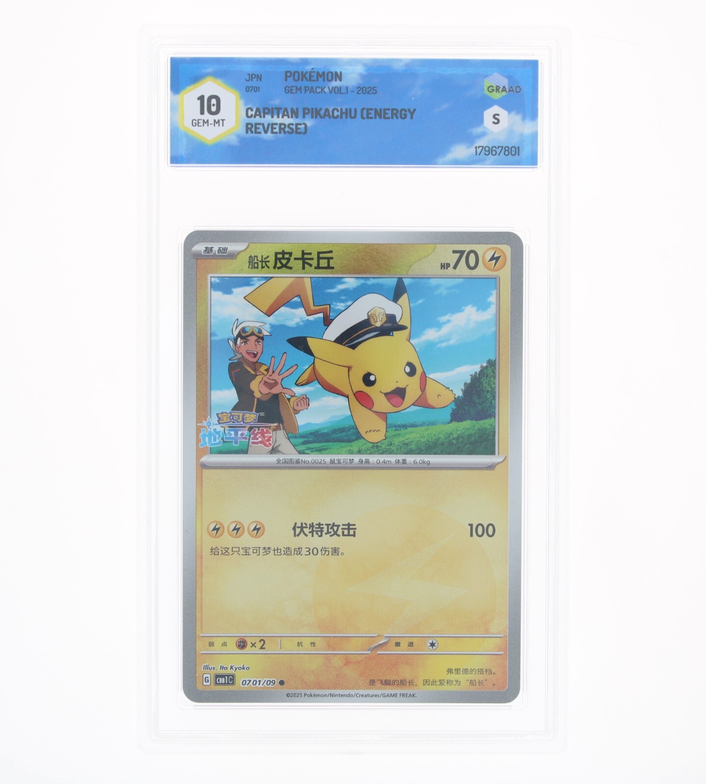 Pokémon - Captain Pikachu (Pokeball inversé) - 2025 - GEM PACK VOL.1 - 07 02/09 - Graad 10 Gene -Mt Chn.