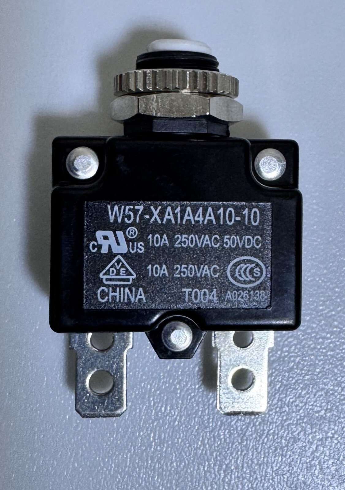 🔸Type : Disjoncteur thermique. 🔹Note actuelle : 10A. 🔸Méthode de réinitialisation : Manual Reset. 🟧Numéro de pièce : W57-XA1A4A-10-10.