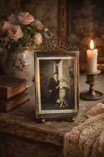 Ancien Cadre Photo Laiton et Verre Biseauté Epoque XIXème