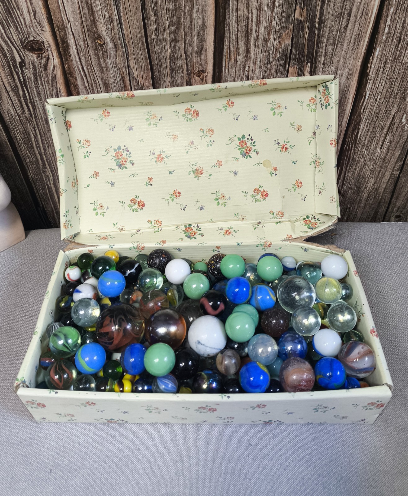 Beau lot de 3,5 kg de billes anciennes. Collection de billes en verre rétro diverses et variées, pesant +/-3,8 kg . Calots, billes normales, potentiellement d'autres types... Elles ont servi, certaines sont abîmées avec des rayures ou usures .