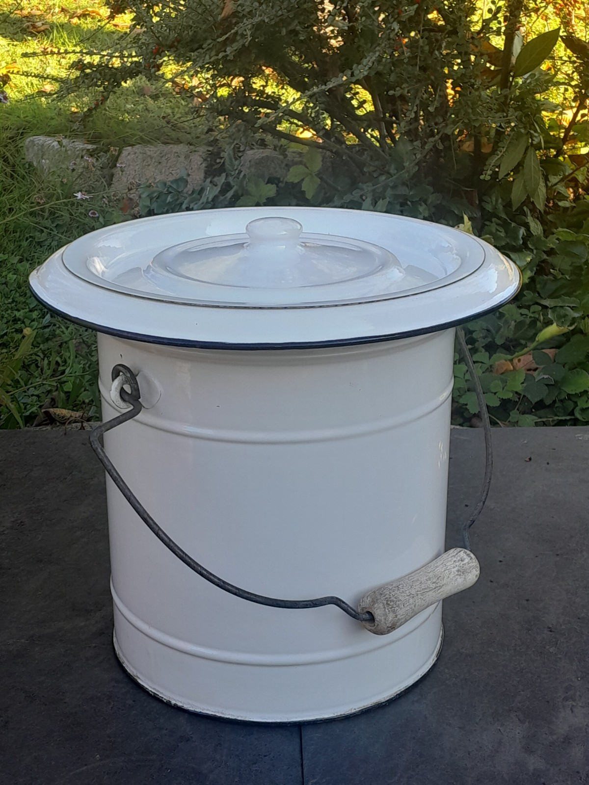 Pot de chambre ,seau d'aisance tôle émaillée ancien, déco vintage très bon état