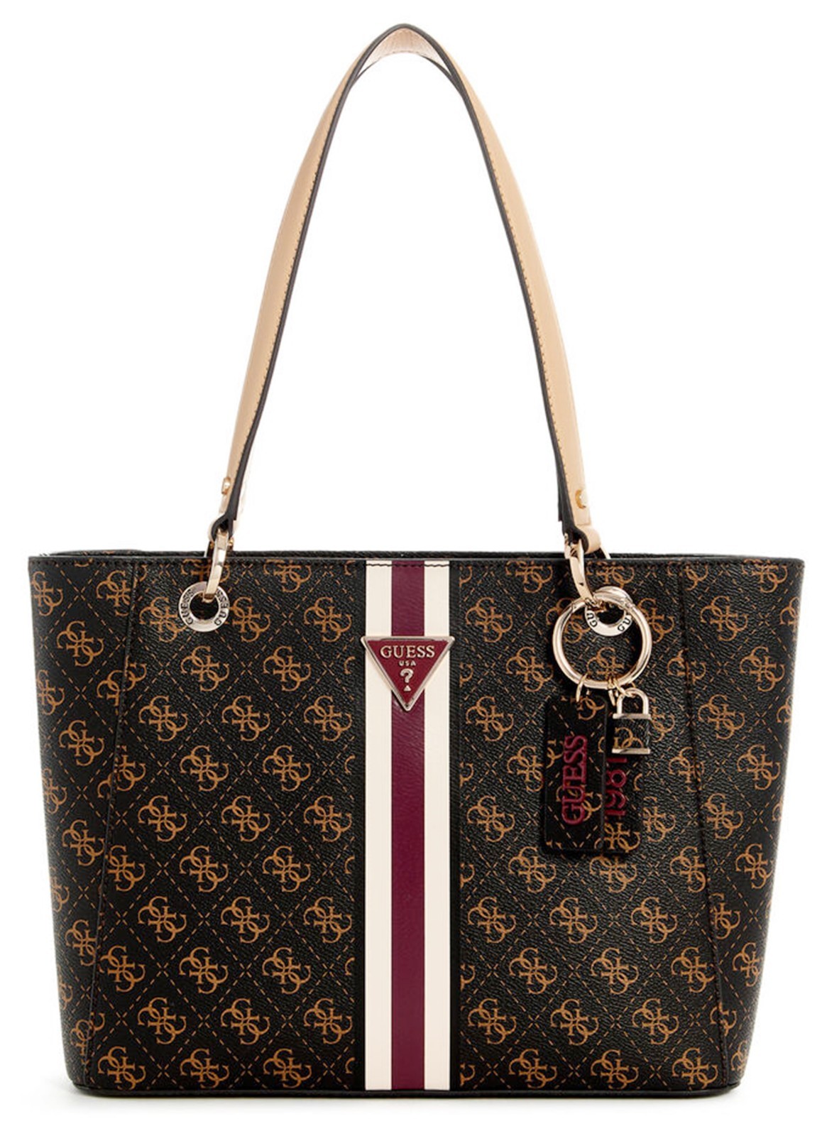 Sac/sac à main/sac fantastique Nouveau avec les étiquettes! Le nouveau sac fourre-tout GUESS Noelle est le compagnon idéal au quotidien pour les femmes soucieuses de la mode ! Il y aura une place pour tous vos objets de valeur dans le compartiment principal spacieux et divisé et la fermeture éclair gardera tout en sécurité. Le design élégant est parfaitement complété par la forme élégante et peut être combiné avec n'importe quel look. Le sac fourre-tout Noelle de GUESS est tout simplement un incontournable absolu ! Guess Noelle Cabas fourre-tout **Doublure intérieure en textile beige avec logo Guess **un compartiment zippé **deux poignées (environ 57 cm) **détails en métal doré **logo Guess en métal doré sur le devant **Sac à poussière inclus logo visible Largeur : bas 35 cm et haut 42.