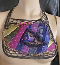 Collier fait main en tissu Art avec perles multicolores Fil de dentelle...