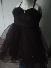 Ceinture à grosse fleur. Robe mi-longue noire ( dessous genoux). Taille 48. Superposition de tulles + doublure.