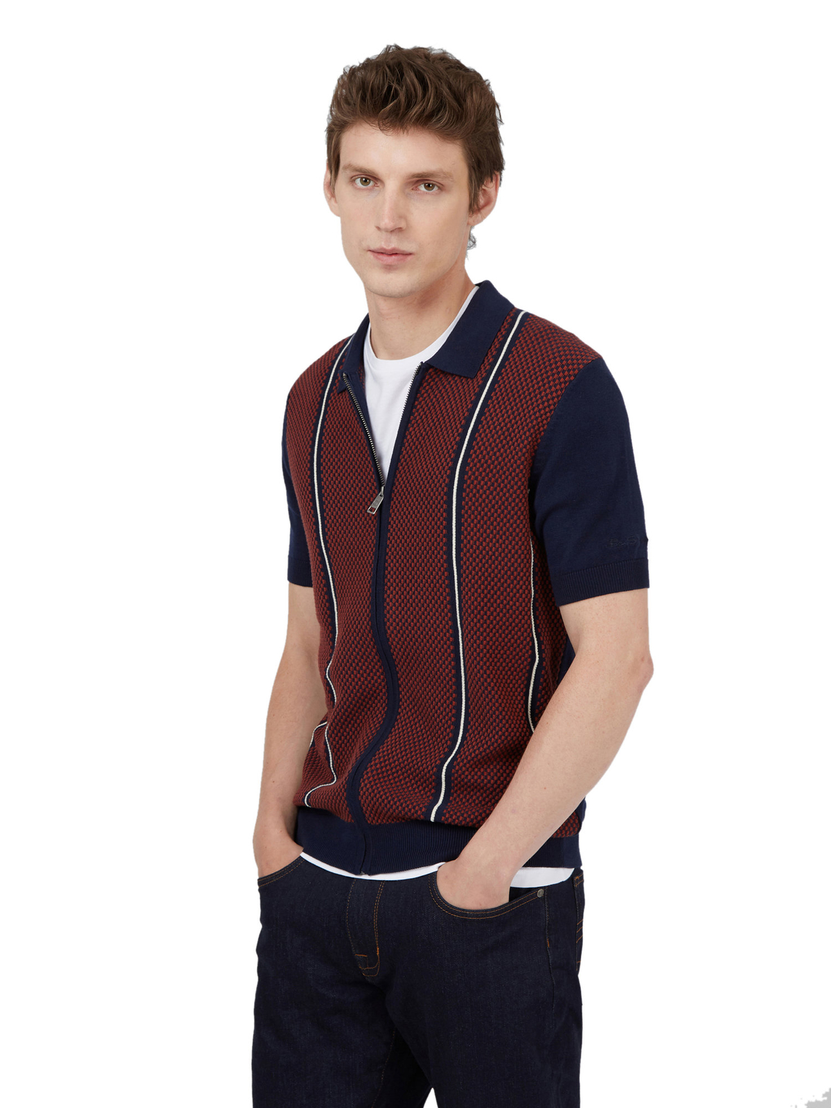 Ben Sherman Polo en Maille Jacquard à Fermeture Éclair pour Homme