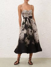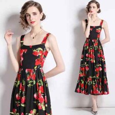 Robe longue noire à fleurs rouges oranges, manches et bas volant. Taille 36