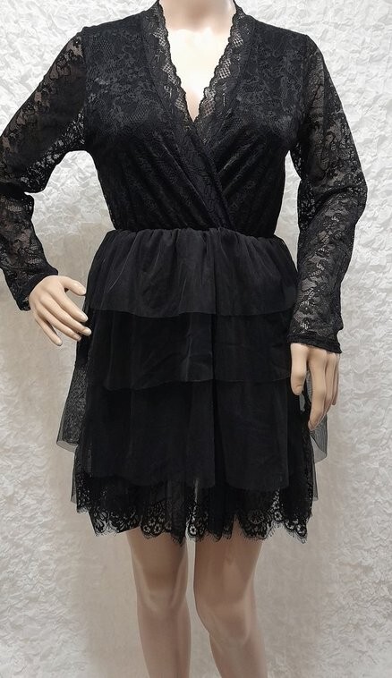 RBF3/ Robe Noir Dentelle & Tulle Cache Coeur Taille Elastiqué T 34 Petit 36