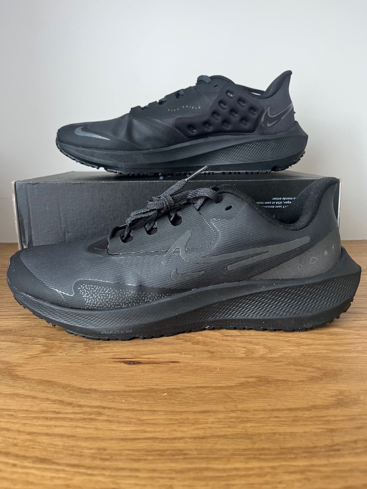 Modèle : Air Zoom Pegasus Shield. État : Neuf - Livrée dans sa boîte d’origine avec couvercle coupée. Taille : Eur : 44,5 / USA : 10.5 / UK : 9.5 / CM : 28.5.