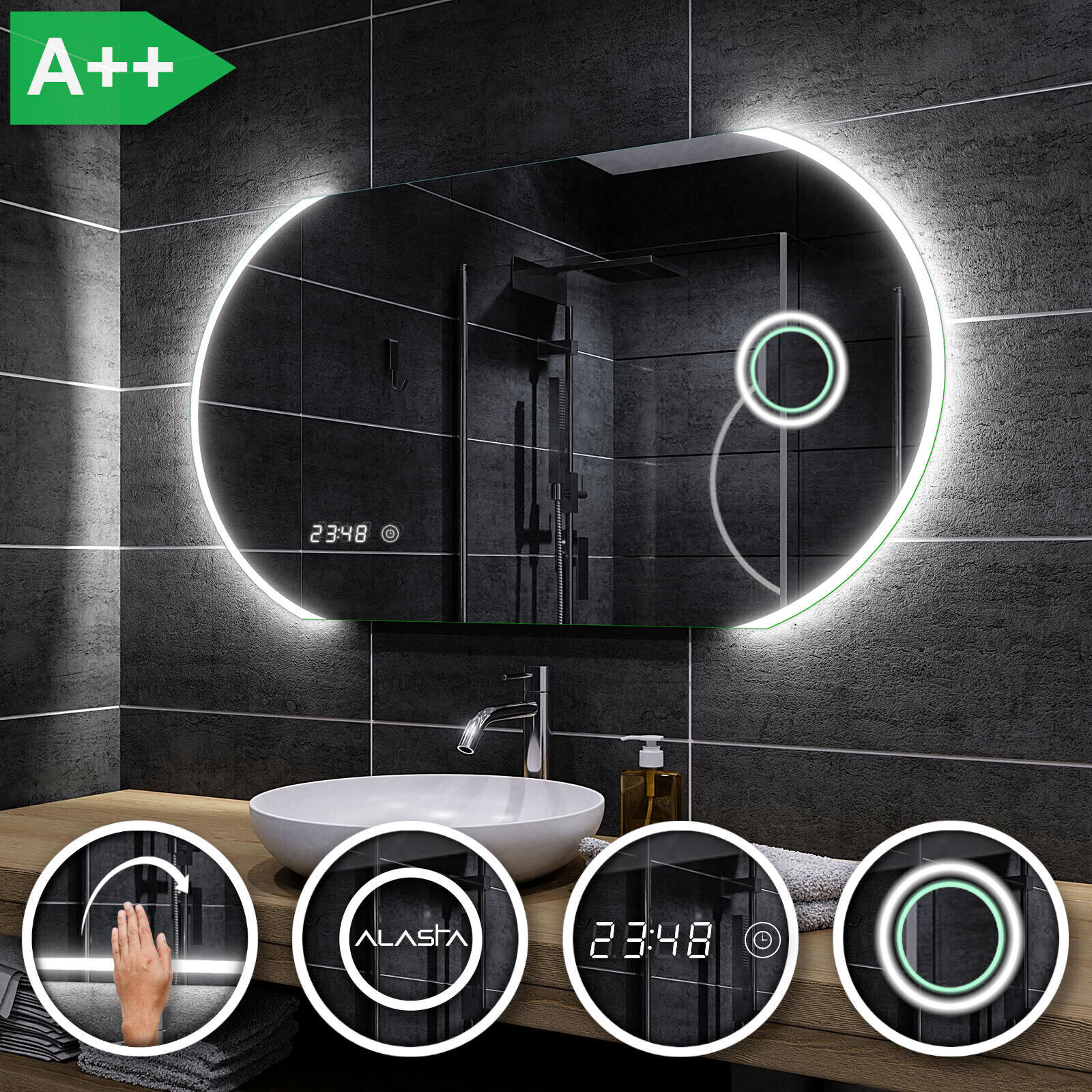 Beau Miroir Salle De Bain Lumineux LED BALTIMORE | INTERRUPTEUR HORLOGE | MAKEUP