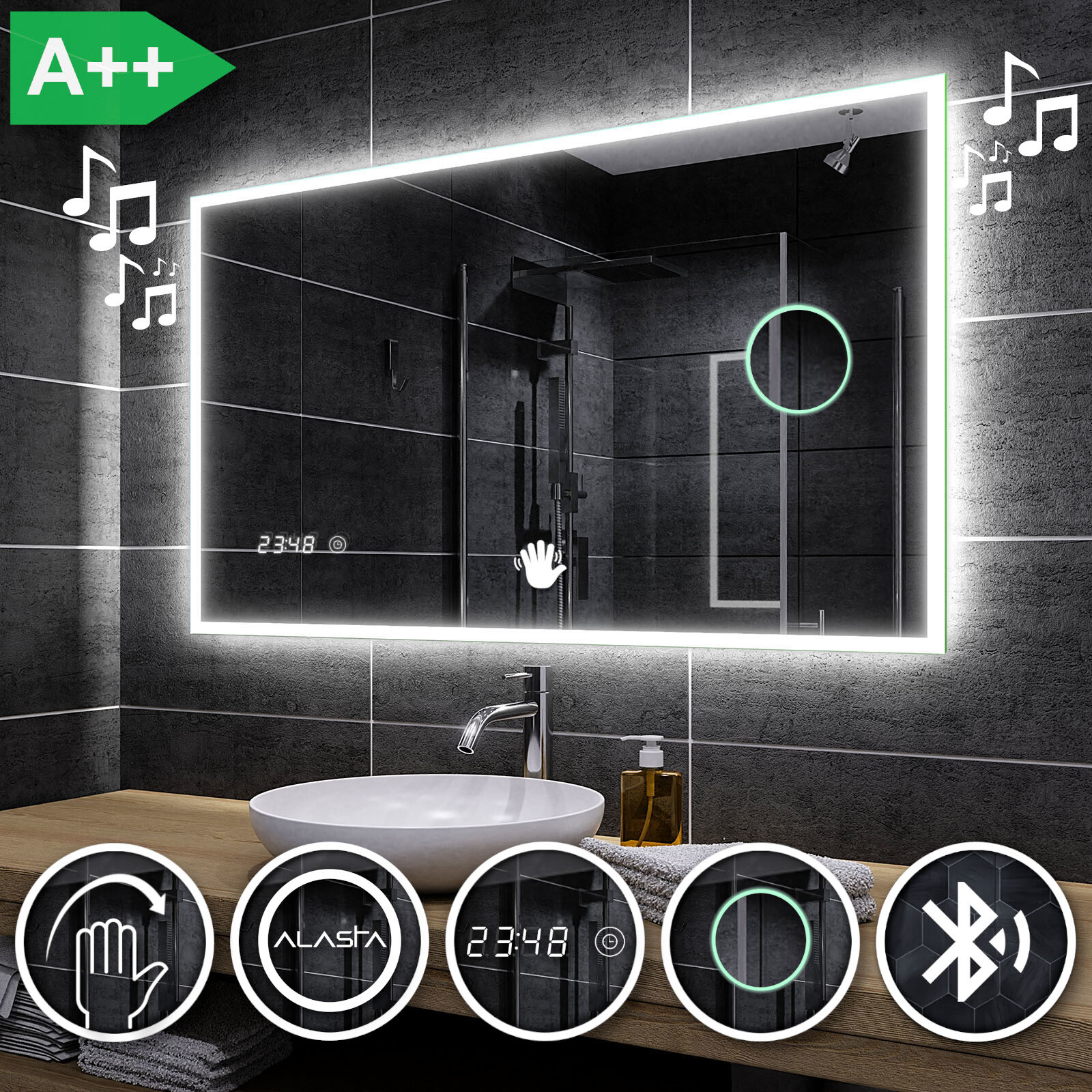 MIROIR SALLE DE BAIN AVEC LED ILLUMINATION. Interrupteur tatcile. Connectez votre smartphone à un miroir via Bluetooth et écoutez votre musique préférée. Matériau: vitre miroir AGC MIROX. L’épaisseur de la vitre miroir – 4 mm.