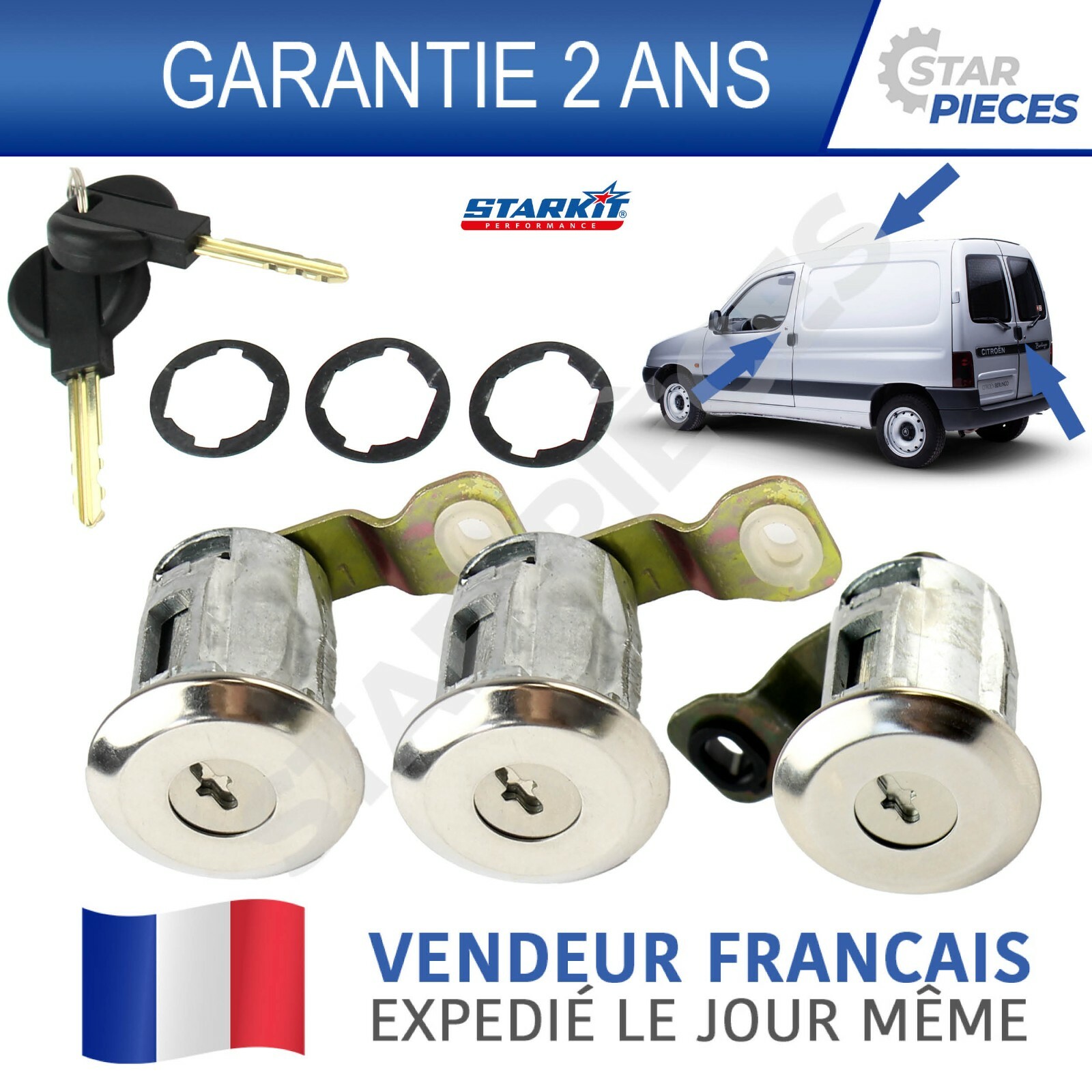 KIT 3 BARILLET SERRURE PORTE AVANT ARRIERE LATERALE PARTNER 1 BERLINGO 1 96-08