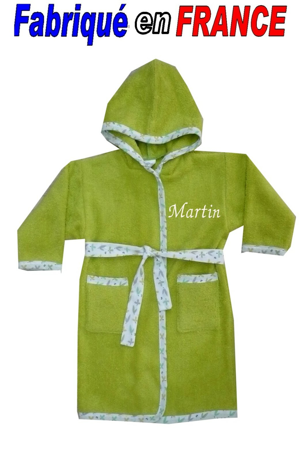 Peignoir enfant prénom brodé de 2 ans à 10 ans Ref.vert anis NEUF Ghimi