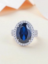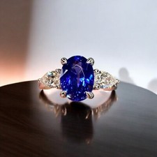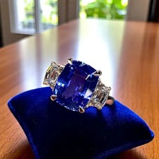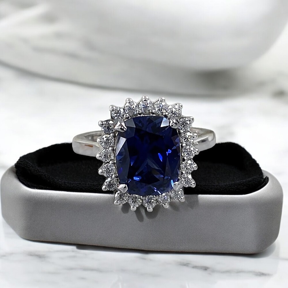 Bague diamant mariage saphir bleu cultivé en laboratoire 3,70 ct taille couss...