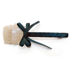 Barrette à cheveux Noeud et pliages de rubans rose saumon et noir. Bien que la photo essaie de rendre la couleur la plus fidèle possible à la réalité, les réglages des écrans d'ordinateurs étant tous différents, il y a des légères différences de tons inévitables entre la photo vue sur votre écran et l'objet réel.