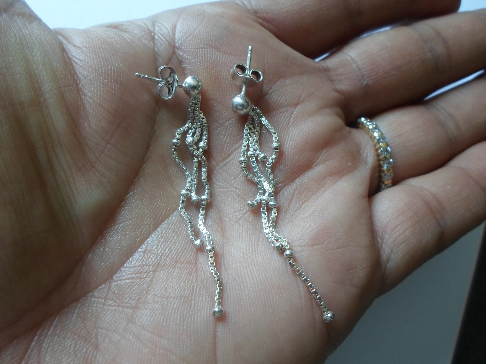 boucles d'oreilles en argent massif, pendantes, chaînettes et petites perles
