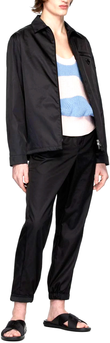 Le Prada Juste un pantalon combine le design moderne avec un confort et une fonctionnalité luxueux. Fait de haute qualité Tissu technologique, il offre un design minimaliste avec détails pratiques, qui est portable pour les hommes et les femmes. La surface légèrement brillante et l'emblématique Prada Logo triangle Sur le dos souligne le caractère premium de ces pantalons. Merci au Celles élastiques avec un train de cordon Si le pantalon s'adapte de manière optimale pendant le Fixation velcro réglable sur l'ourlet permet un ajustement individuel. Le côté Poches zippées Offrez un espace de stockage sûr et la jambe juste coupée en assure une Silhouette moderne et élégante. Ces pantalons sont parfaits pour un look de loisirs haut de gamme ou comme une déclaration de mode élégante. Prada a été.