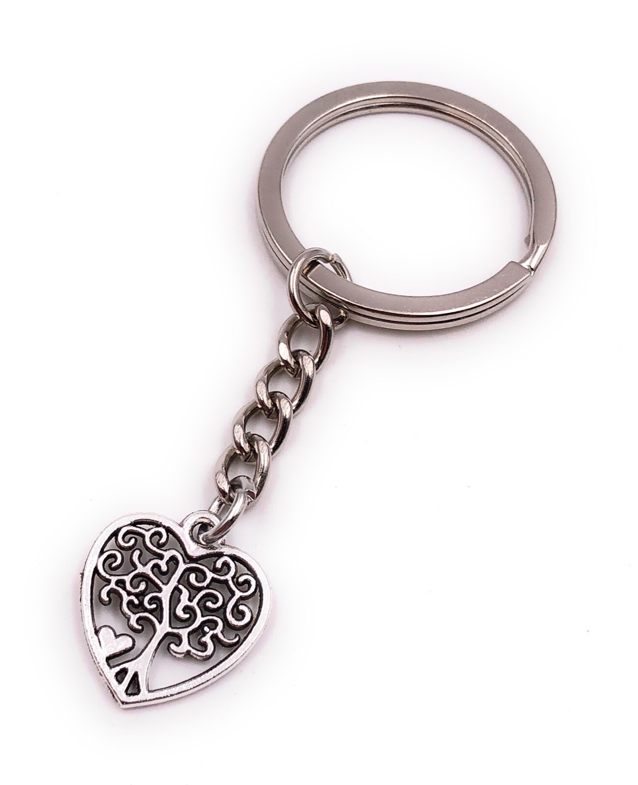 Arbre de la Vie Arbre Plante Dans Cœur Argent Porte-Clés Pendentif