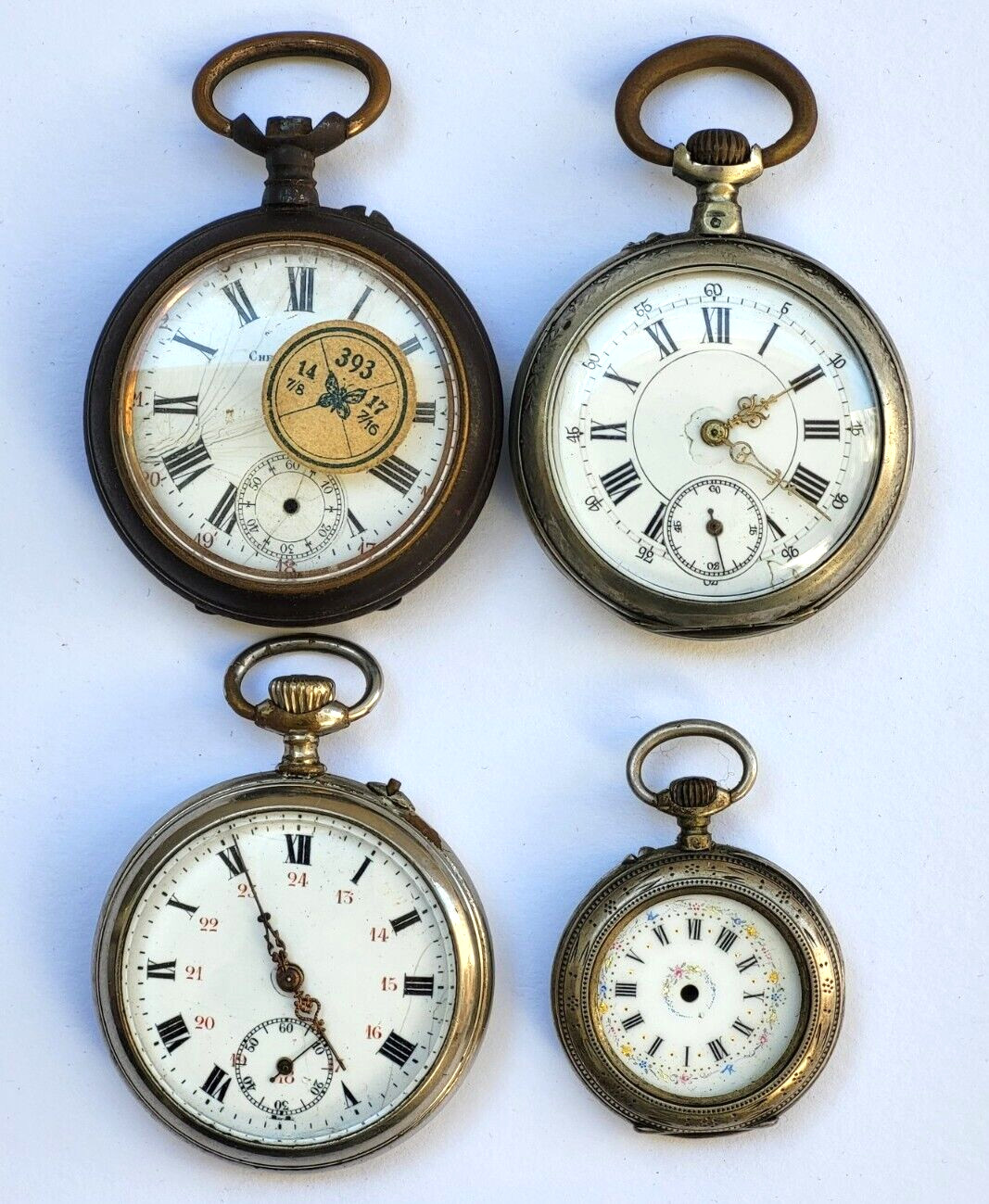 Vendues en l'état pour restauration . 2 d'entre elles ont un boîtier en argent massif, 1 en acier et 1 en acier ou métal argenté.