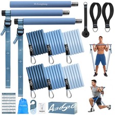 Hommie Kit de Barre de Pilates avec 6 Bandes de Résistance Élastique en Latex-Barre Pilates à 3 Sections pour Yoga,Torsion, Squat. Plage de hauteur:150-210CM. Conception de boucle réglable : Hommie barre de pilates en tige d’acier de qualité supérieure.