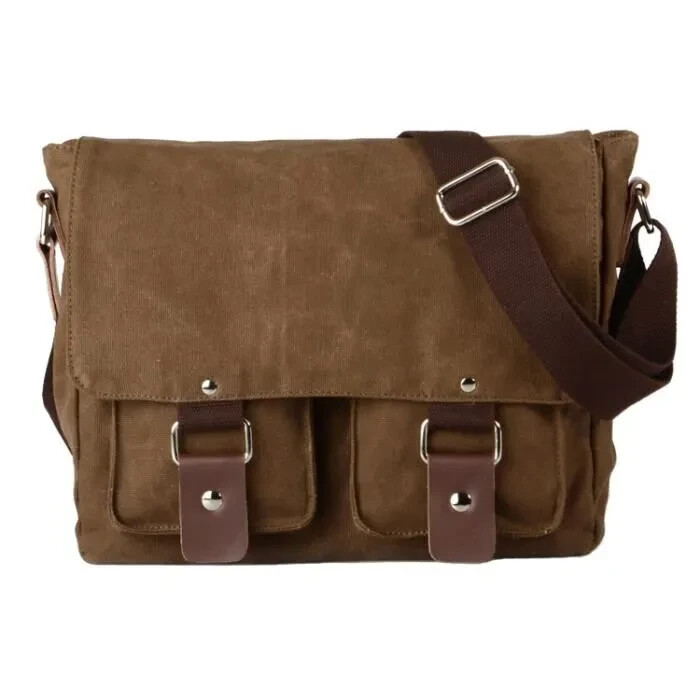 Sac Besace Bandoulière Homme Vintage en Toile Vieillie Marron 30 x 9 x 26 cm