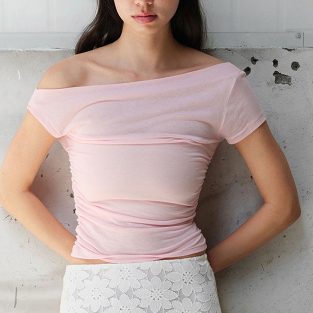 T-shirt femme confortable été épaules dénudées slim manches courtes style d