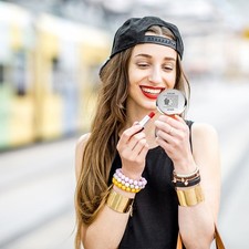 Est un miroir de maquillage, la surface est décorée de fleurs célèbres chinoises, d'un inconnu de la mode. Compact léger, juste à droite pour votre poche ou votre petit à main. - Miroir de maquillage imprimé de fleurs chinois, chic de mode.