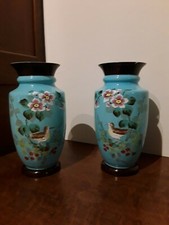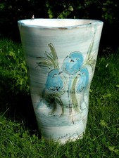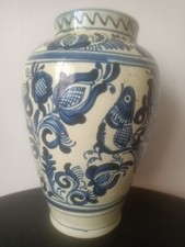 ANCIEN VASE OISEAU BLEU decor floral peint a la main