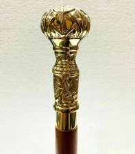 Il s'agit d'un bâton de marche nautique en laiton vieilli. Arbre en bois se démonte en trois sections. Fabriqué en bois de rose indien. Matériau : laiton et bois. Tige en bois en trois plis. Finition : poignée en laiton brillant avec bâton marron.