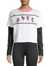 DISNEY t-shirt top femme MICKEY MINNIE tête marguerites XS ou M noir neuf