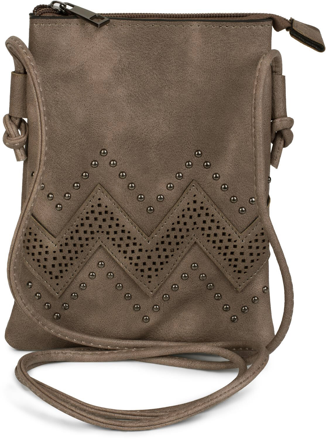 Mini sac à bandoulière avec motif zigzag (découpé) et rivets à tête ronde. styleBREAKER mini sac à bandoulière décontracté avec motif zigzag (découpe) et orné de rivets à tête ronde. Sac à main environ 14 x 19 cm.