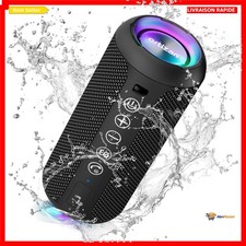 Ortizan Enceinte Portable Bluetooth 5.3 sans Fil avec Bass Puissantes, Étanche IPX7, Subwoofer à 360 Degrés, Autonomie 30 hrs, Double Appairage Stéréo, Lumière LED. Que vous grimpiez à l'extérieur, que vous jouiez sur la plage ou que vous campiez loin de la ville, vous disposez d'un excellent support de signal !