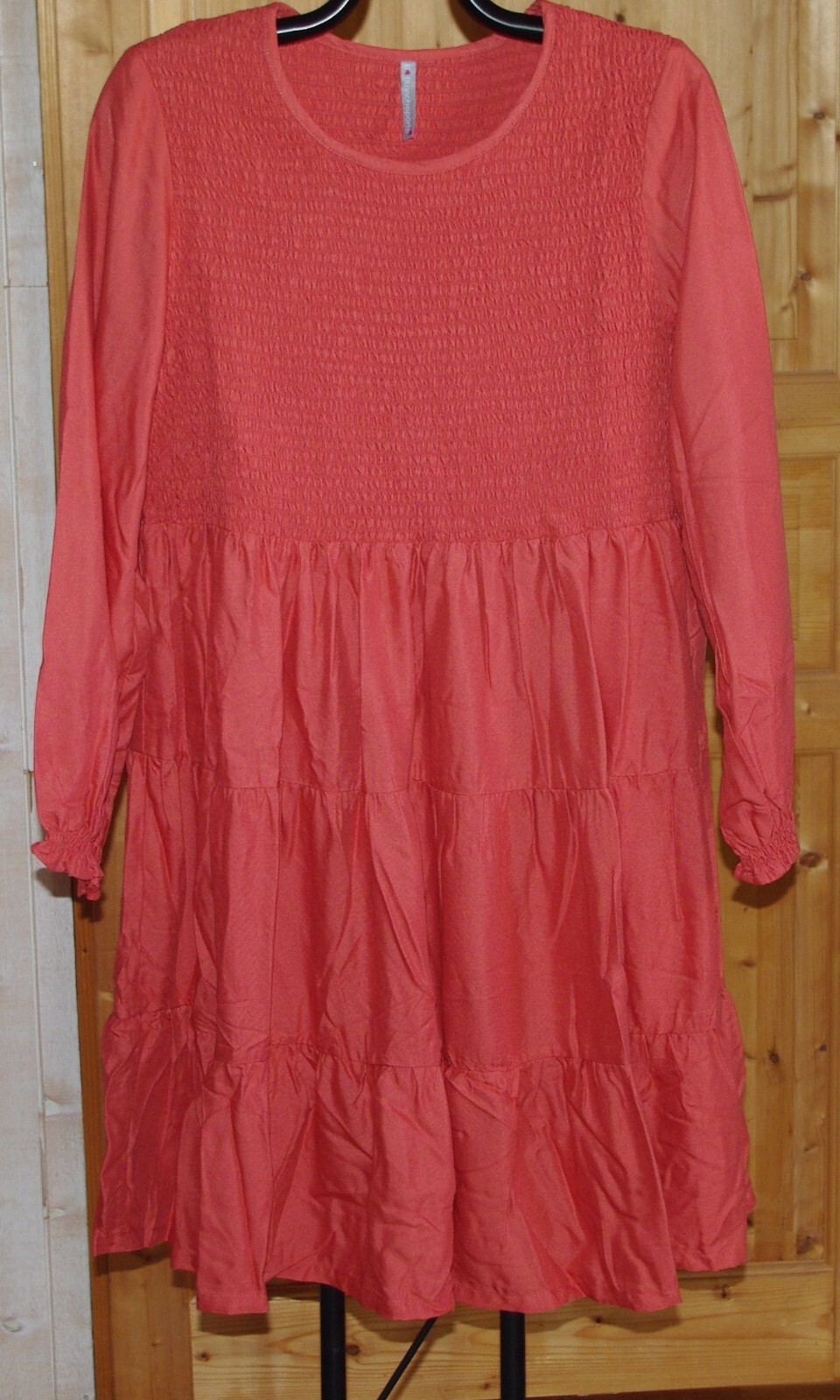 Robe smockée manches longues unie paprika blancheporte t 46