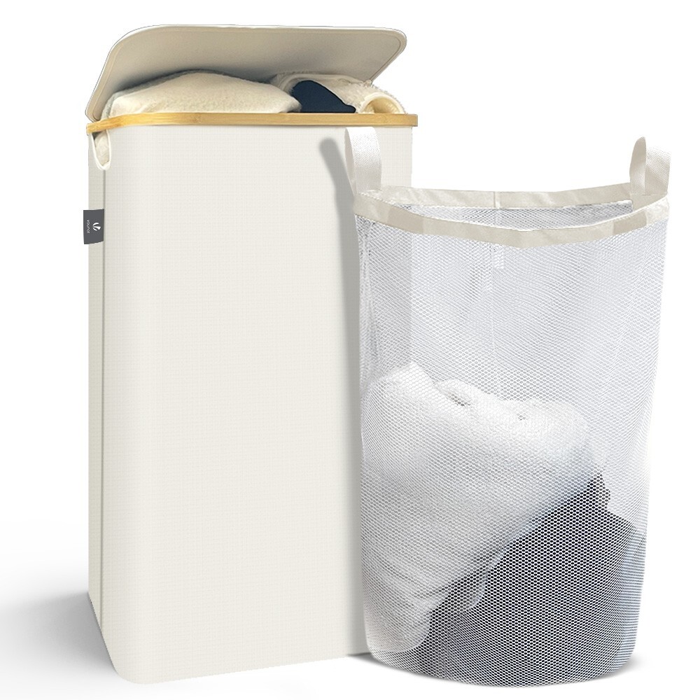 Capacité : 100L. De plus, son cadre est fabriqué en bambou robuste, ce qui le rend très stable et durable. De plus, le couvercle sur le dessus protège de la poussière et des odeurs. Lorsque vous n'avez pas besoin de l'utiliser, il vous suffit de la plier et de la ranger dans un tiroir ou dans un coin sans qu'elle ne vous gêne.