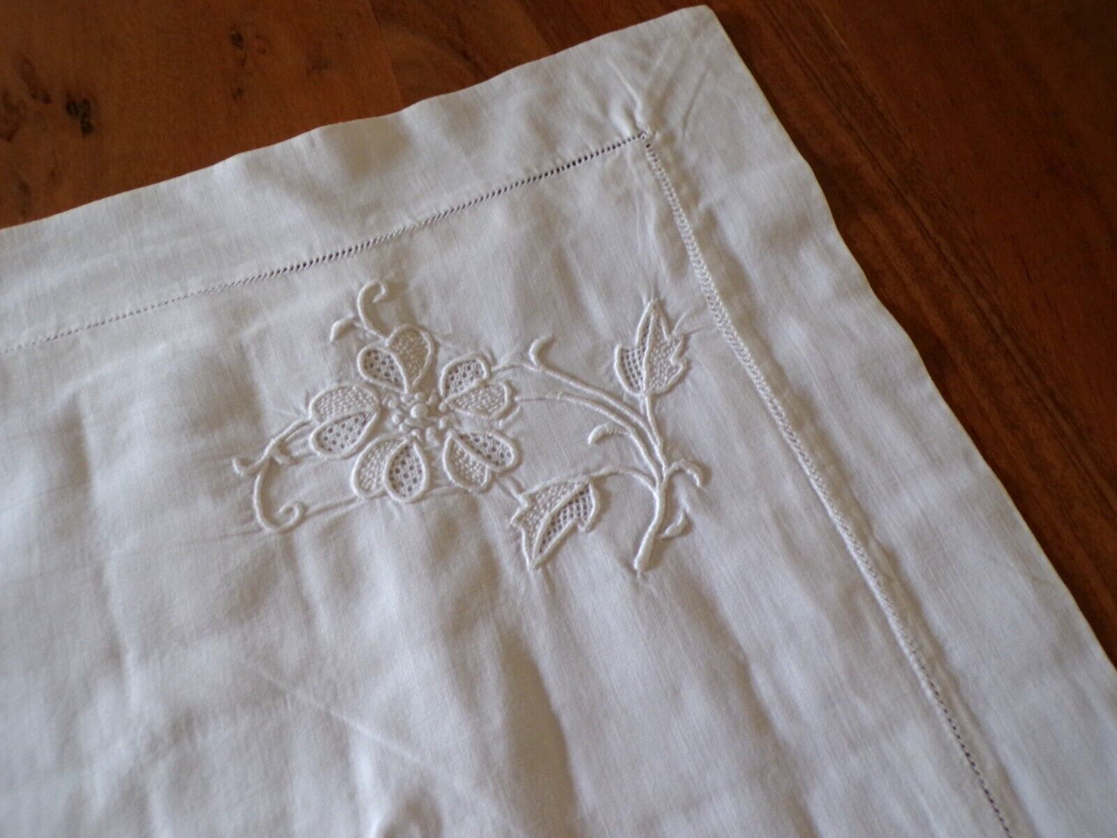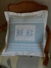 Linge ancien Housse de coussin en coton blanc avec broderies