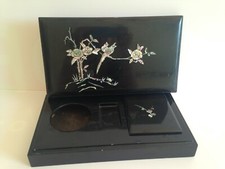 BELLE BOITE, COFFRET A BIJOUX OCTOGONAL MARQUETERIE BOIS ET NACRE MAROCAINE. Voir photos