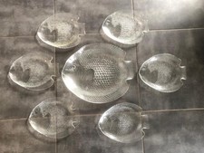 Plat À Poisson Et 6 Assiettes Poisson En Verre Arcoroc, France, Vintage