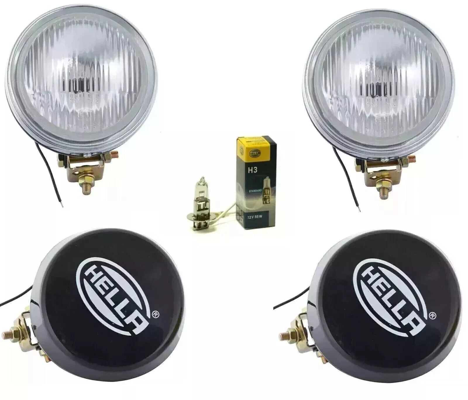 Paire de phares antibrouillard rond Hella verre transparent + couvercle avec ...