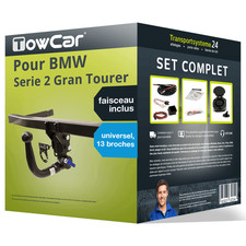 PACK COMPLET pour BMW Serie 2 Gran Tourer 07.2014 - à ce jour, composé d'un attelage rotule démontable Brink et d'un faisceau 7 broches Spécifique au véhicule TowTec. D’autres informations produit importantes consultables dans la notice de montage - veuillez cliquer sur le lien!.