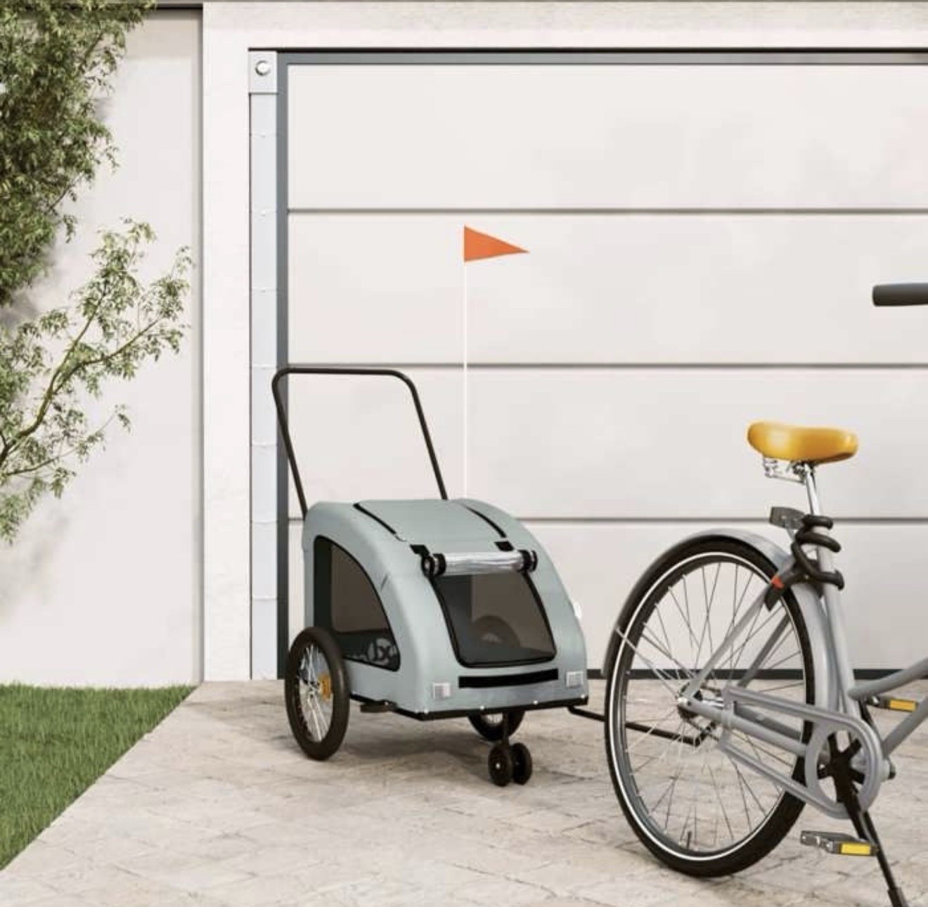 Remorque De Vélo XXL Animaux Chien Chat Chariot 3 Roues Drapeau De Sécurité Gris
