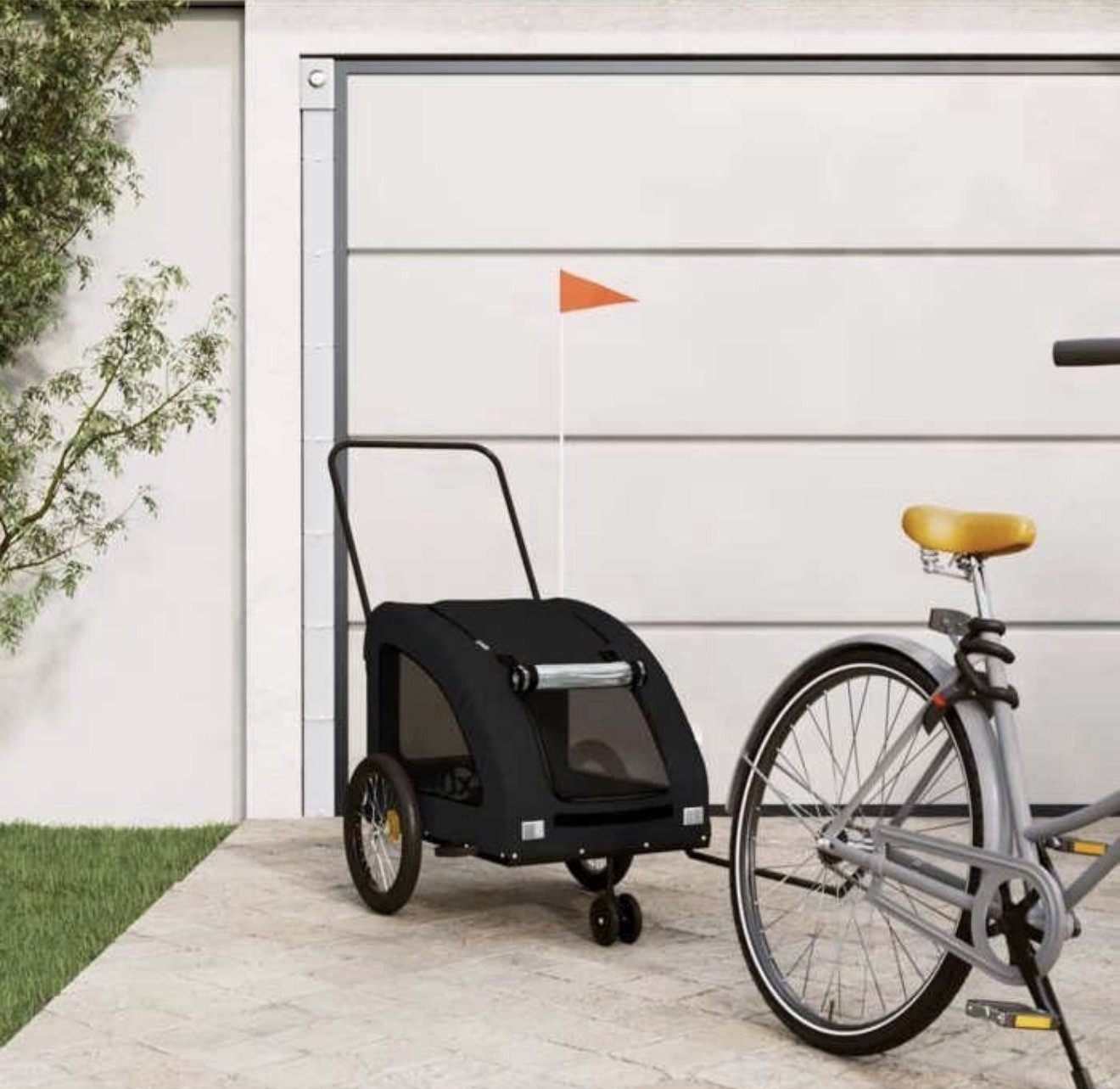 Remorque De Vélo XXL Noir Animaux Chien & Chat Chariot 3 Roues Drapeau Sécurité