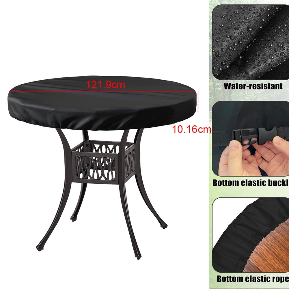 Housse de table ronde en tissu Oxford 600D noir imperméable pour mobilier de pa