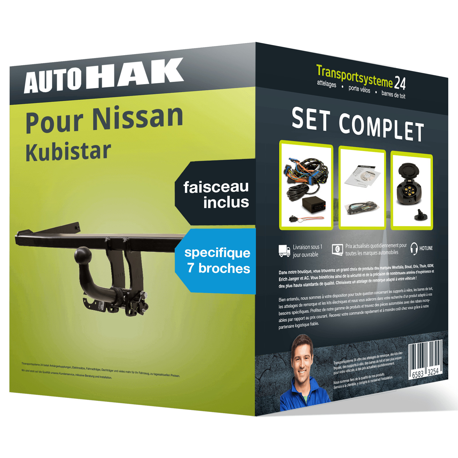 PACK COMPLET pour Nissan Kubistar 08.2003 - à ce jour, composé d'un attelage rotule démontable Auto Hak et d'un faisceau 7 broches Spécifique au véhicule ECS Electronics. D’autres informations produit importantes consultables dans la notice de montage - veuillez cliquer sur le lien!.