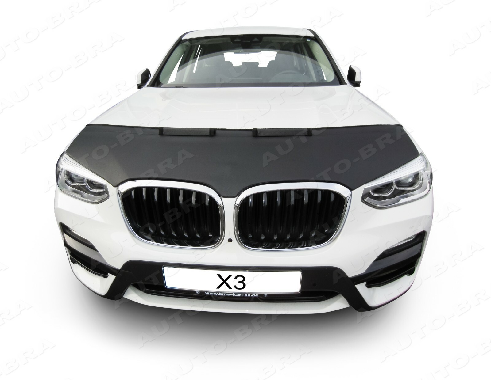 BMW X3 G01. BRA DE CAPOT - PROTEGE CAPOT compatible avec. Bra de capot - protège capot en simili cuir, conçu et fabriqué par Auto-Bra l'Allemagne. À l'intérieur avec feutre mou pour protéger la peinture sur le capot.