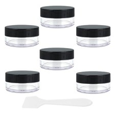 Lot de 6 mini boites de rangement en plastique transparent avec couvercle. Dimensions : Ø 3,5 cm / Hauteur 4 cm. Idéal pour ranger ou transporter bijoux, médicaments ou tout autre petit objet.