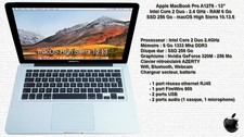 Disque dur SSD 1 To. Idéal pour étudiant, travail bureautique et ce qui veut un bon Mac pas cher. L'ordinateur fonctionne bien. Il a été testé (voir images). - 1 ports audio casque/enceintes, 1 microphone.