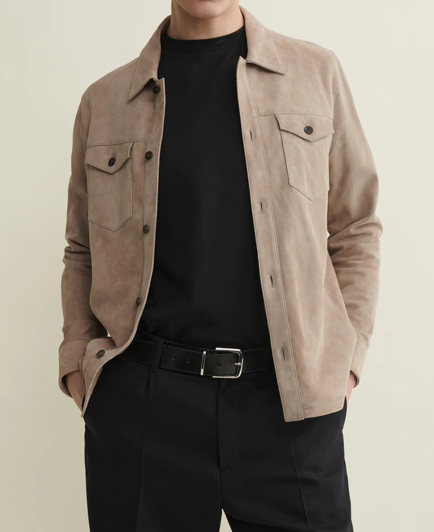 Veste chemise en cuir beige pour homme pur daim taille S M L XXL 3XL à...