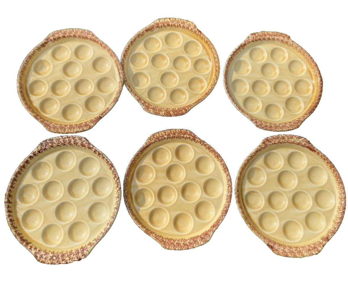 Ensemble de 6 assiettes à escargots 12 trous porcelaine de Gien France ø 19,5 cm