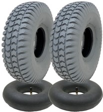 A vendre 4 pneus neufs Pneu pour scooter de mobilité, fauteuil roulant électrique Pneus 200x50mm 4ply P191-02 **Frais de port gratuits** Diamètre total : 200mm Largeur : 50mm Capacité de charge : 113 kg par roue à 36 PSI Il s'agit d'un caoutchouc gris non marquant d'excellente qualité avec un pneu nervuré lourd de 4 épaisseurs. (il s'agit de pneus gonflés qui nécessitent des chambres à air)