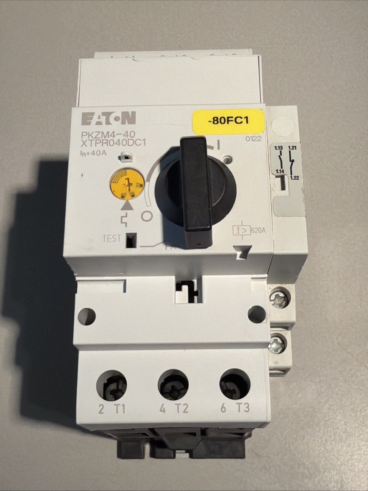 L'interrupteur de protection moteur Eaton PKZM4-40 présente les principales caractéristiques et spécifications suivantes, basées sur les fiches techniques Eaton du fabricant et les informations du revendeur : Nom du produit Interrupteur de protection moteur Eaton Moeller® série PKZM4 Numéro de catalogue thermomagnétique, 3 pôles Tension de fonctionnement nominale (Ue) Courant continu nominal (Iu) Champ de réglage du déclencheur pour surcharge (Ir) Plage de décrochage en court-circuit fixe à 620 A (env. 15,5 x Iu) Puissance de fonctionnement nominale (AC-3) 11 kW à 230 V, 20 kW à 400 V, 30 kW à 690 V Capacité de commutation (Icu) à 400 V CA Sensibilité à la perte de phase Oui, selon CEI/EN 60947-4-1 Technologie de connexion Classe de protection IP20 (appareil), IP00 (terme.
